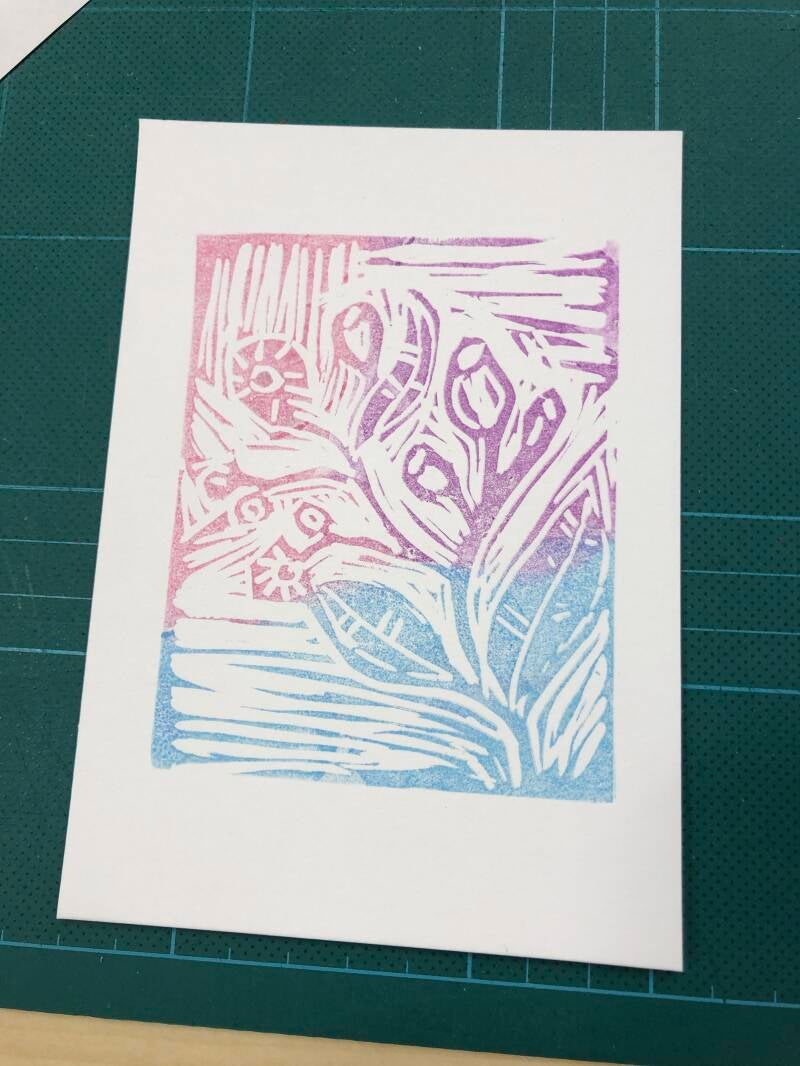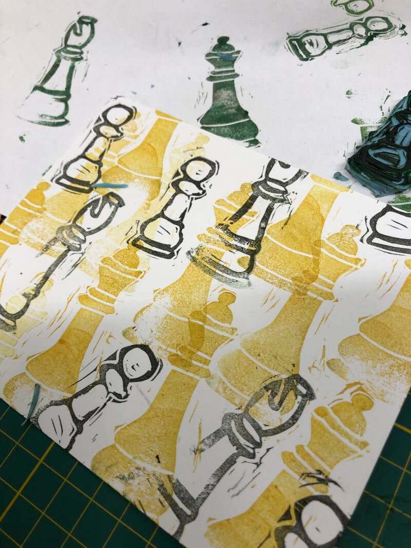 “Mijn zoon (10) en ik hebben de workshop linosnede gedaan. Tessa liet ons eerst de mogelijkheden zien en gaf duidelijke instructies, hielp waar nodig. We hadden al snel een heel mooie kleine stempel. Ik vond het een ontdekking dat je je ontwerp in losse onderdeeltjes kunt maken en dan dus ook weer zoveel mogelijkheden krijgt door met verschillende kleuren te stempelen. Was een hartstikke leuke workshop!”